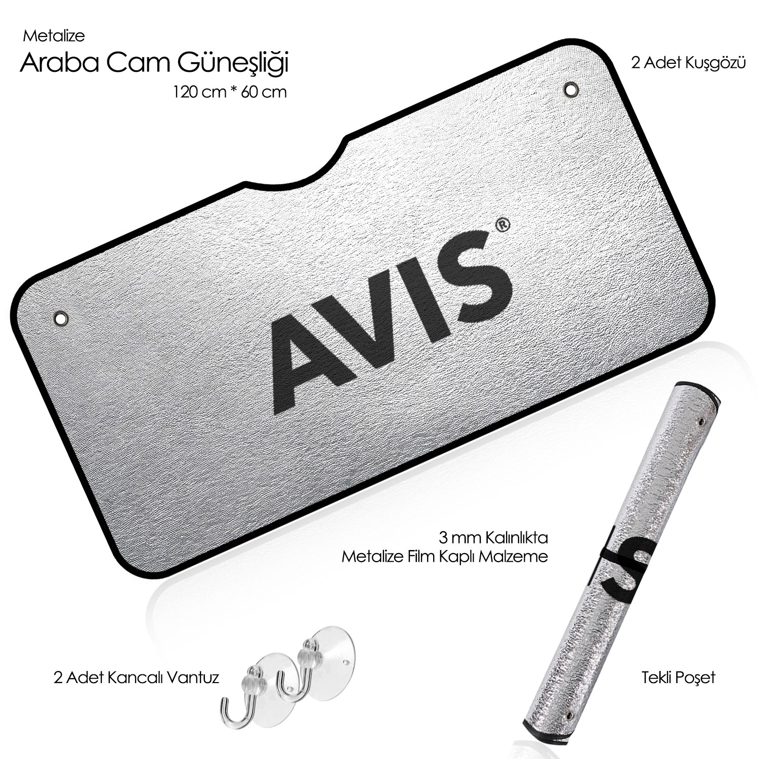 Promosyon ürünleri arasında olan metalize oto güneşliği, araçların içini güneşin zararlı etkilerinden korurken, aynı zamanda markaların tanıtımını yapmak için ideal bir üründür. 3 mm kalınlıkta köpük üzerine metalize film kaplanarak üretilen bu ürün, araba için metalize güneşlik arayanlar için mükemmel bir çözüm sunar. Promosyon ürünleri arasında olan metalize ön cam güneşlik, aracın ön camında oluşan aşırı ısınmayı engelleyerek iç mekanın serin kalmasını sağlar. Promosyon metalize oto güneşliği, vantuzlu yapısıyla kolayca takılabilir ve her türlü araca uyum sağlar. Araba için metalize güneşlik, şık tasarımı ve fonksiyonelliği ile dikkat çeker. Promosyon ürünleri arasında olan metalize ön cam güneşlik, güneş ışınlarının araç içine girmesini engelleyerek, özellikle yaz aylarında konfor sağlar. Promosyon metalize oto güneşliği, rulo ambalajı içinde pratik bir şekilde saklanabilir ve taşınabilir. Araba için metalize güneşlik, hem araç içi sıcaklık dengesini sağlar hem de markaların görünürlüğünü artırır. Metalize ön cam güneşlik, firma logosu baskısı ile kişiselleştirilebilir, bu da onu promosyon amaçlı ideal hale getirir. Promosyon ürünleri arasında olan metalize oto güneşliği, kullanıcısına yüksek kaliteli koruma sunarken, aynı zamanda uzun ömürlüdür. Araba için metalize güneşlik, vantuzlu yapısı sayesinde kolayca çıkarılabilir ve tekrar takılabilir. Promosyon ürünleri arasında olan metalize ön cam güneşlik, araç içindeki eşyaların aşırı ısınmasını önler, böylece içerideki eşyalar zarar görmez. Promosyon metalize oto güneşliği, hem estetik hem de fonksiyonel açıdan kullanıcılar için büyük fayda sağlar. Araba için metalize güneşlik, araç sahiplerinin yazın serin bir sürüş deneyimi yaşamasına olanak tanır. Metalize ön cam güneşlik, promosyon ürünü olarak markaların tanıtımını etkili bir şekilde yapar.