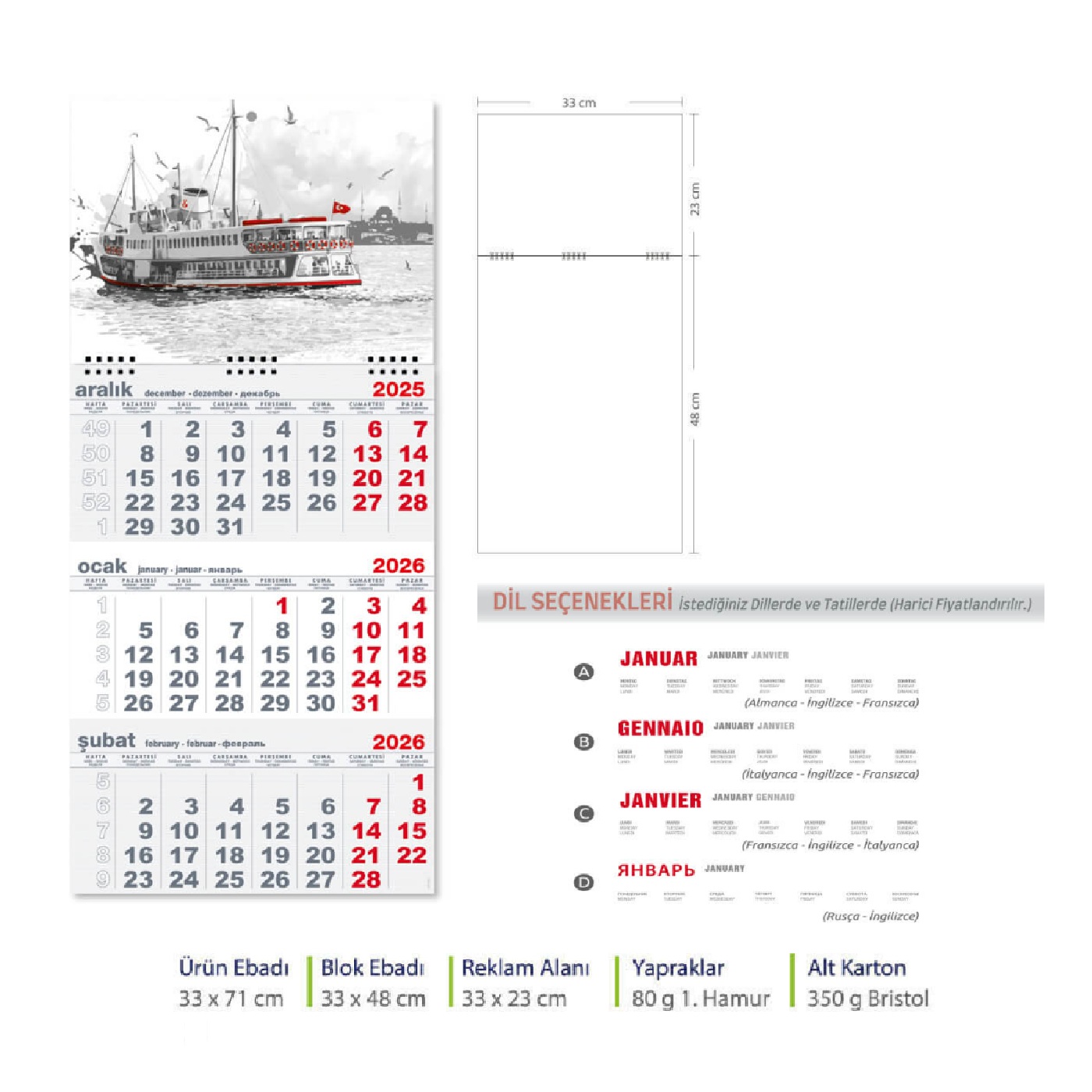 - Verilen Fiyat Baskısız Takvim İçin Geçerlidir