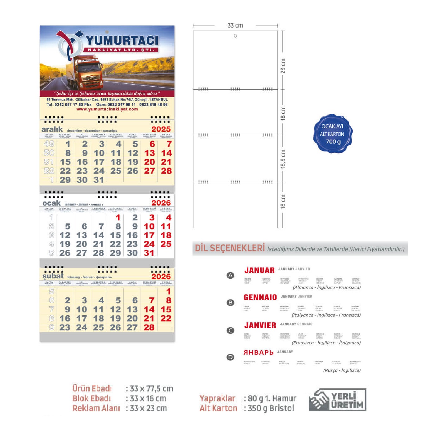 - Verilen Fiyat Baskısız Takvim İçin Geçerlidir