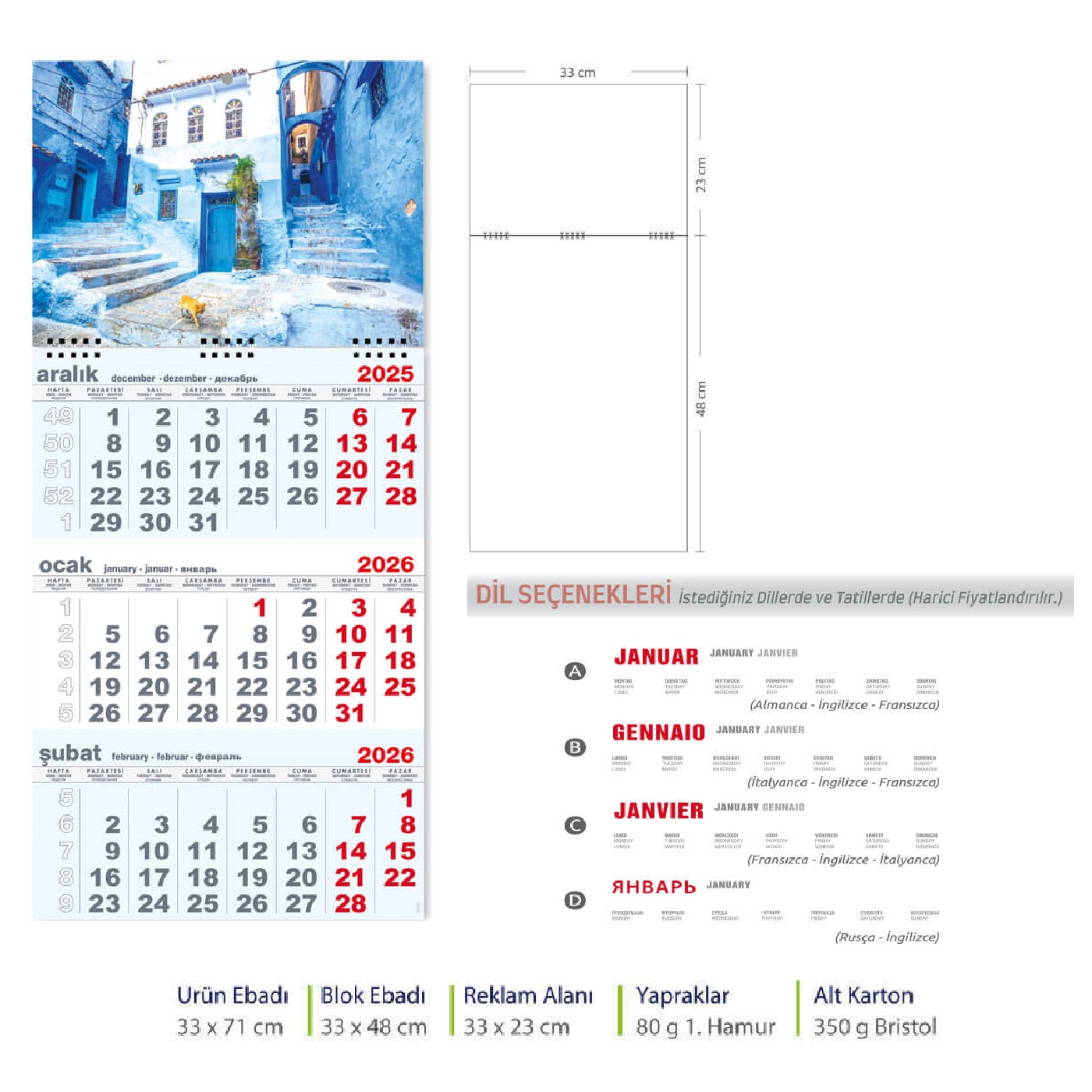 - Verilen Fiyat Baskısız Takvim İçin Geçerlidir