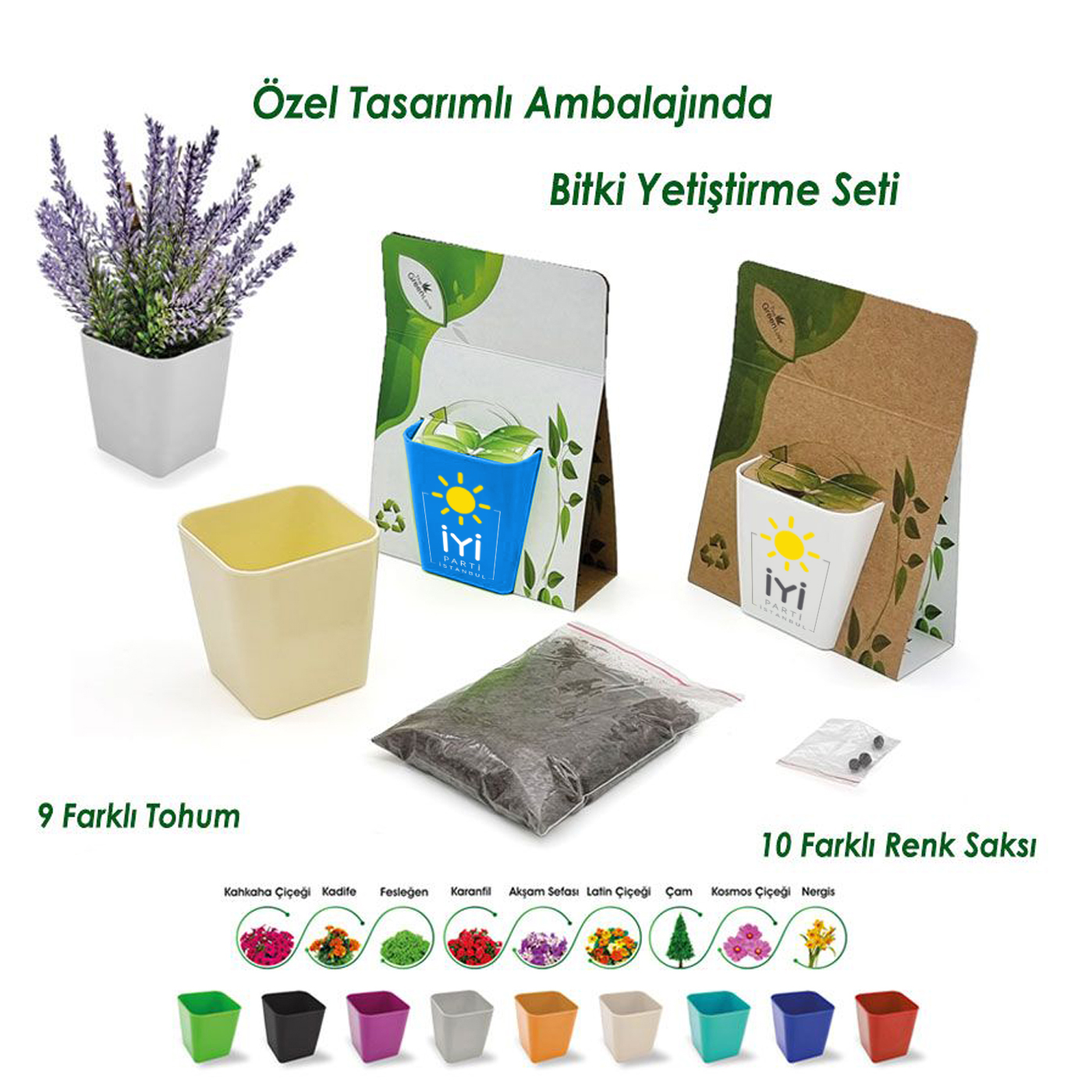 İYİ Parti Logo Baskılı Köşeli Saksılı Dikim Seti Çantalı