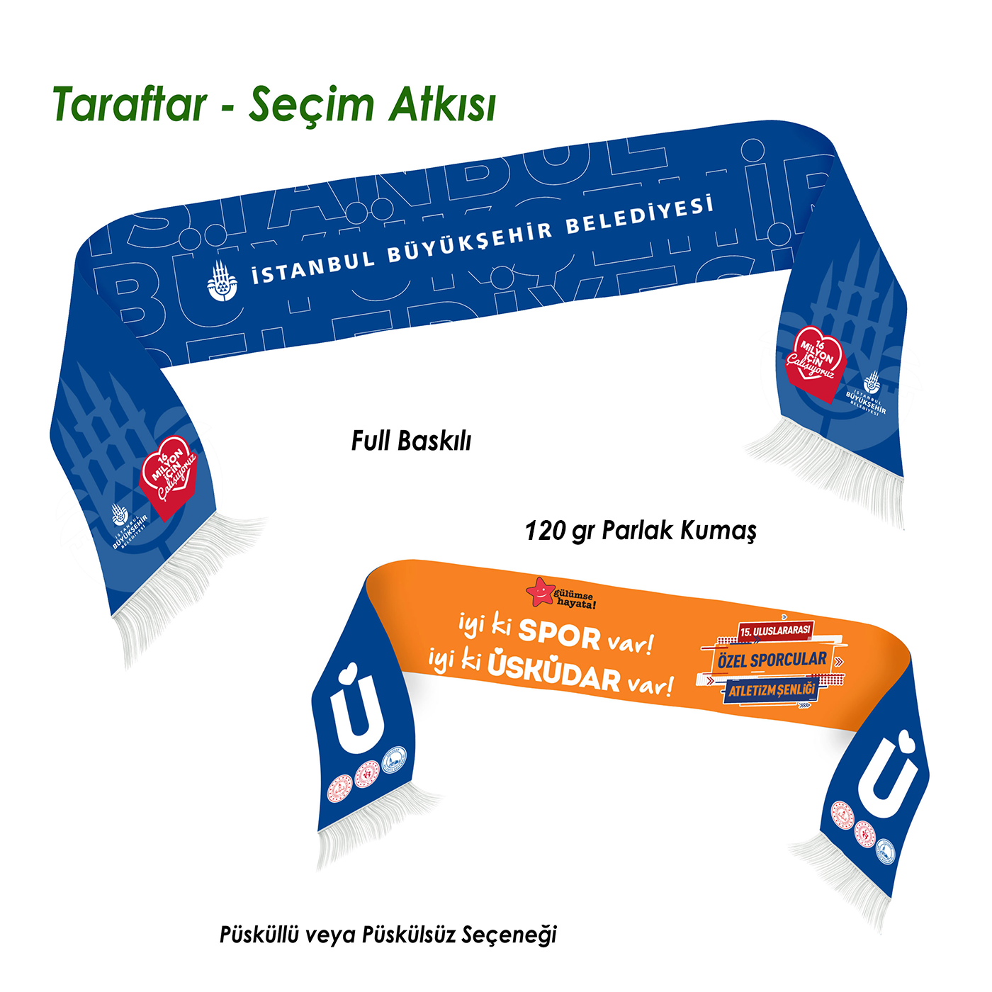 Sitemizde Yer Alan Fiyat 1000 Adet Sipariş İçin - Püskülsüz Atkı - 2 Yön Çok Renk Baskı Dahil Olarak Verilmiştir