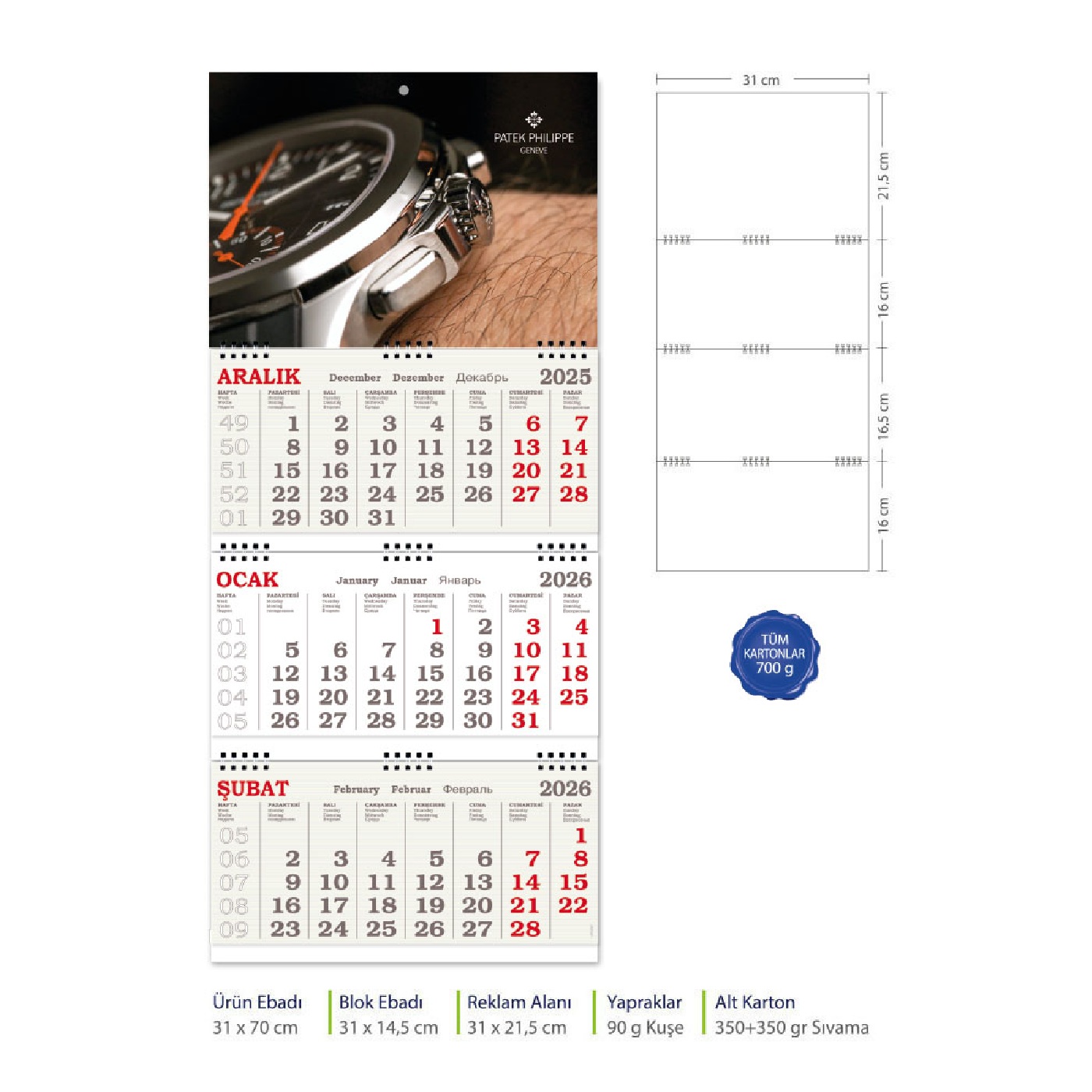 - Verilen Fiyat Baskısız Takvim İçin Geçerlidir