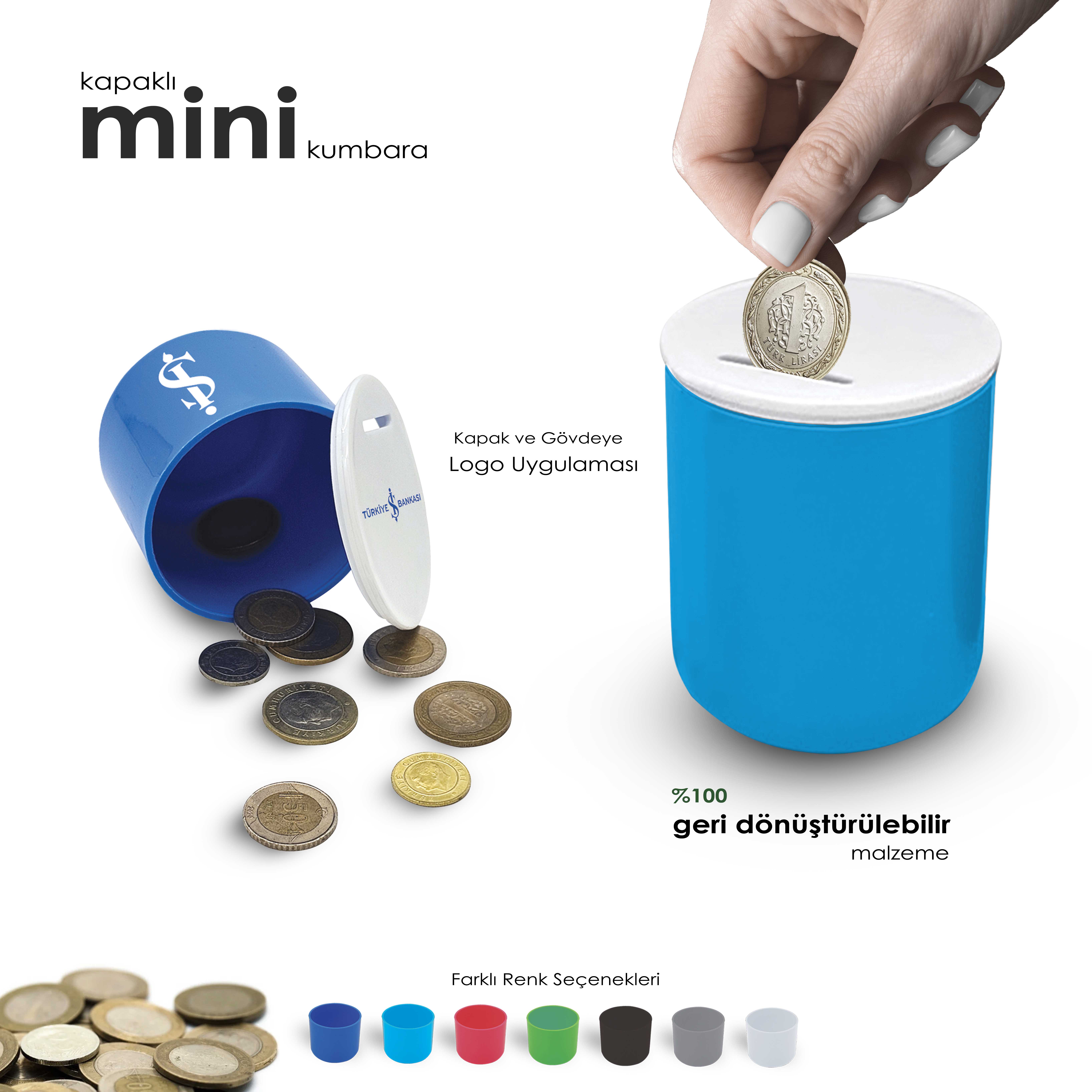 - % 100 Geri dönüştürülebilir malzemeden üretilmiş plastik kumbara