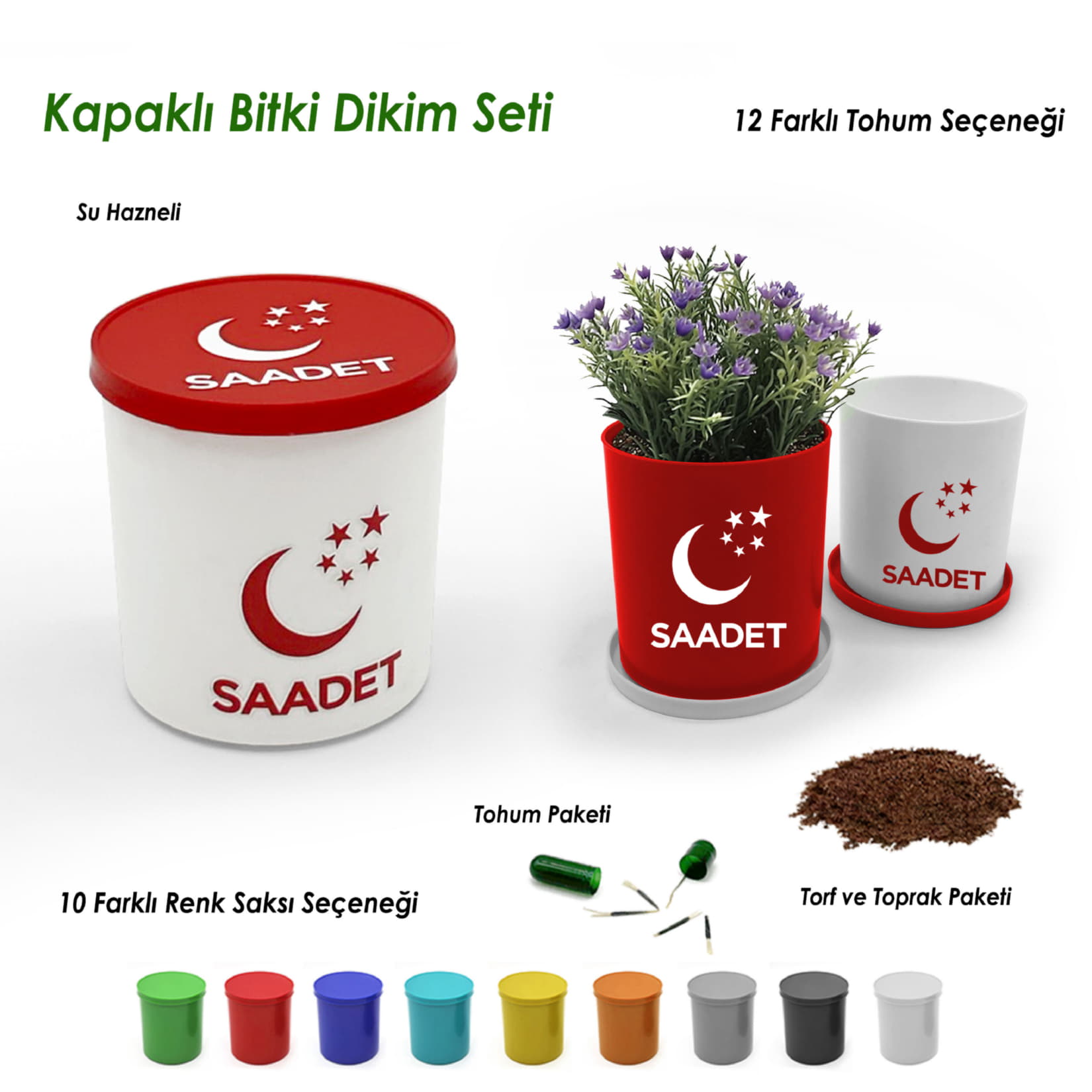 Saadet Partisi Logo Baskılı Kapaklı Bitki Dikim Seti - Yuvarlak