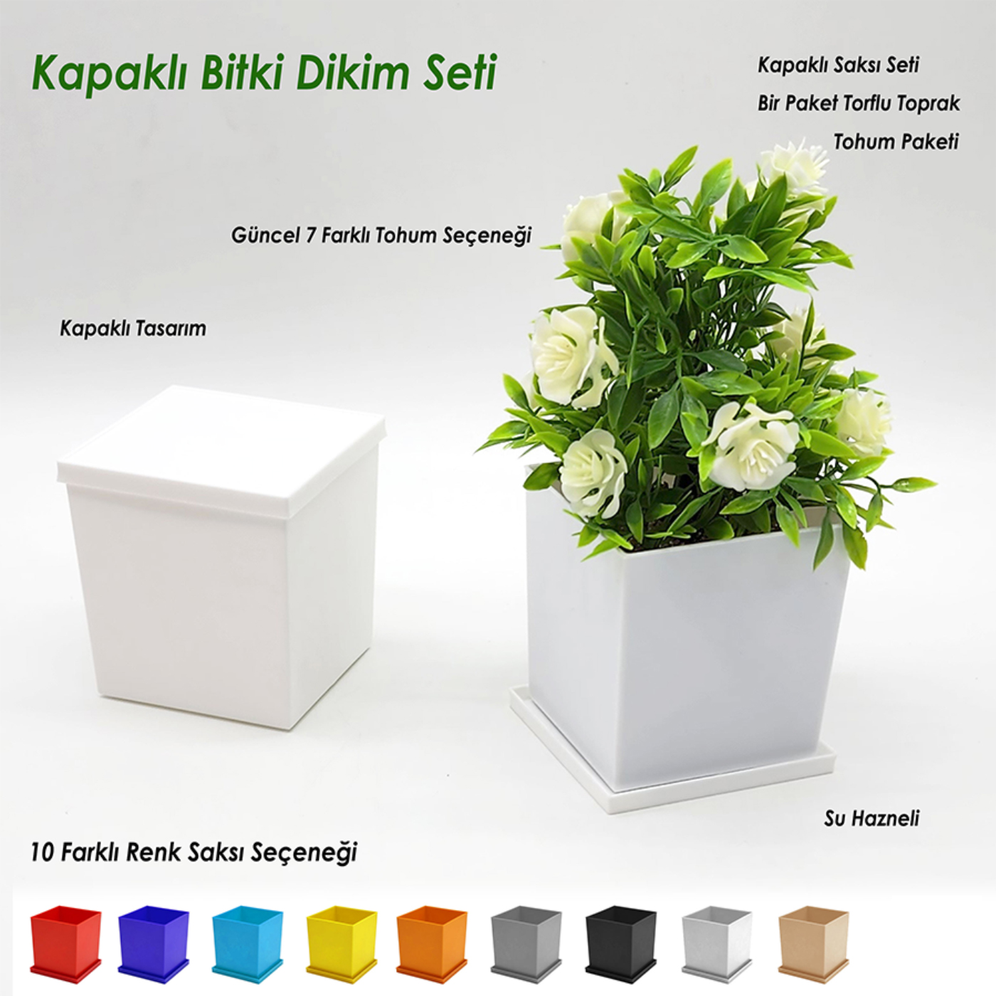 Kare Şekilli Tohumlu Bitki Dikim Seti