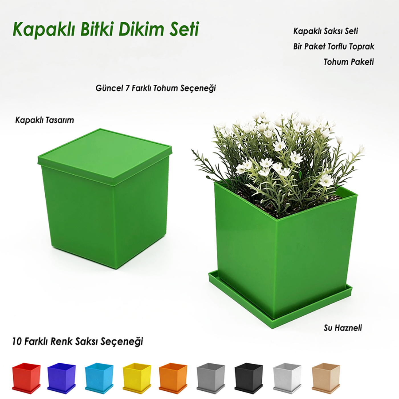 Yeşil Dünya İçin Doğa Dostu Kare Bitki Dikim Seti ( Kapaklı )